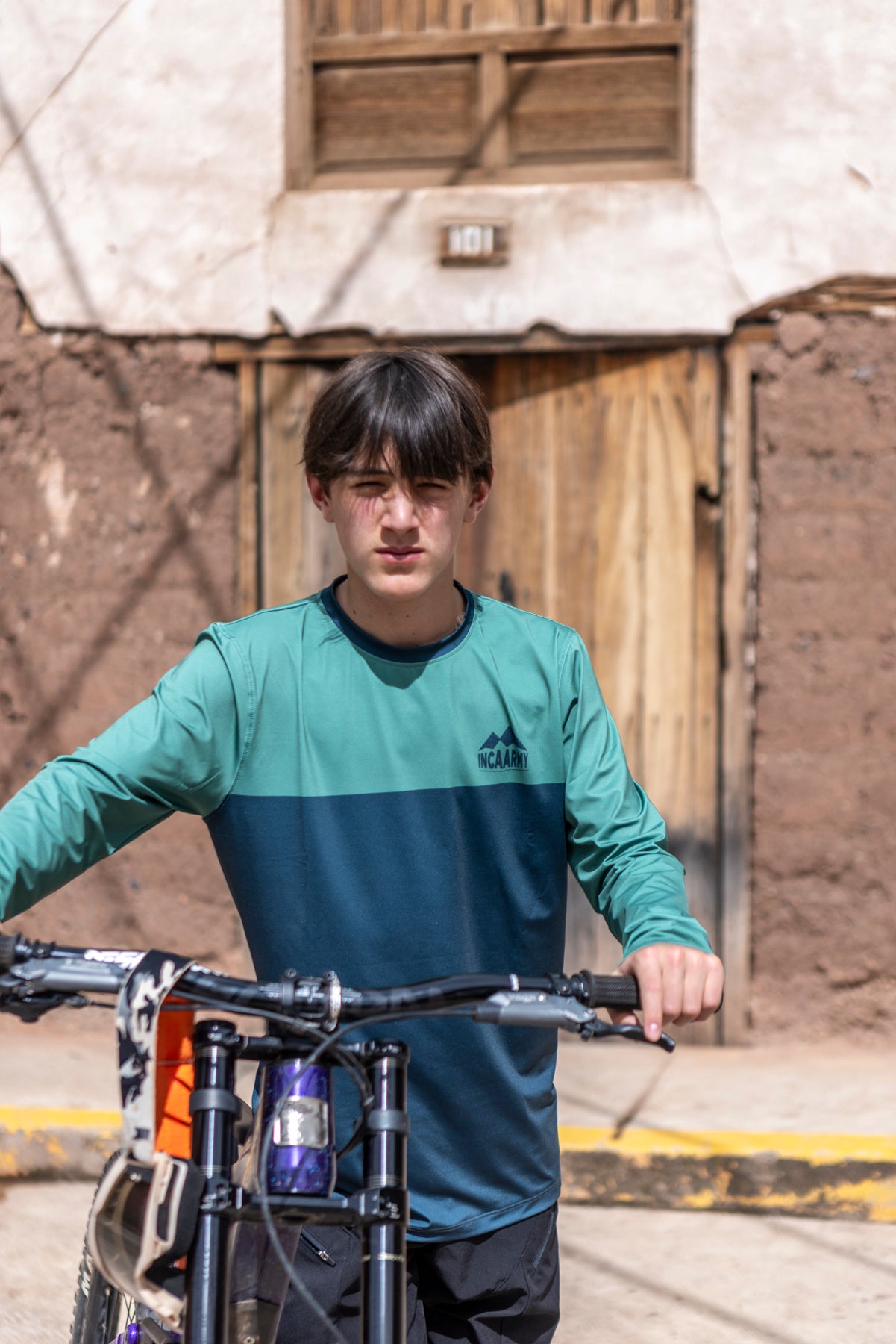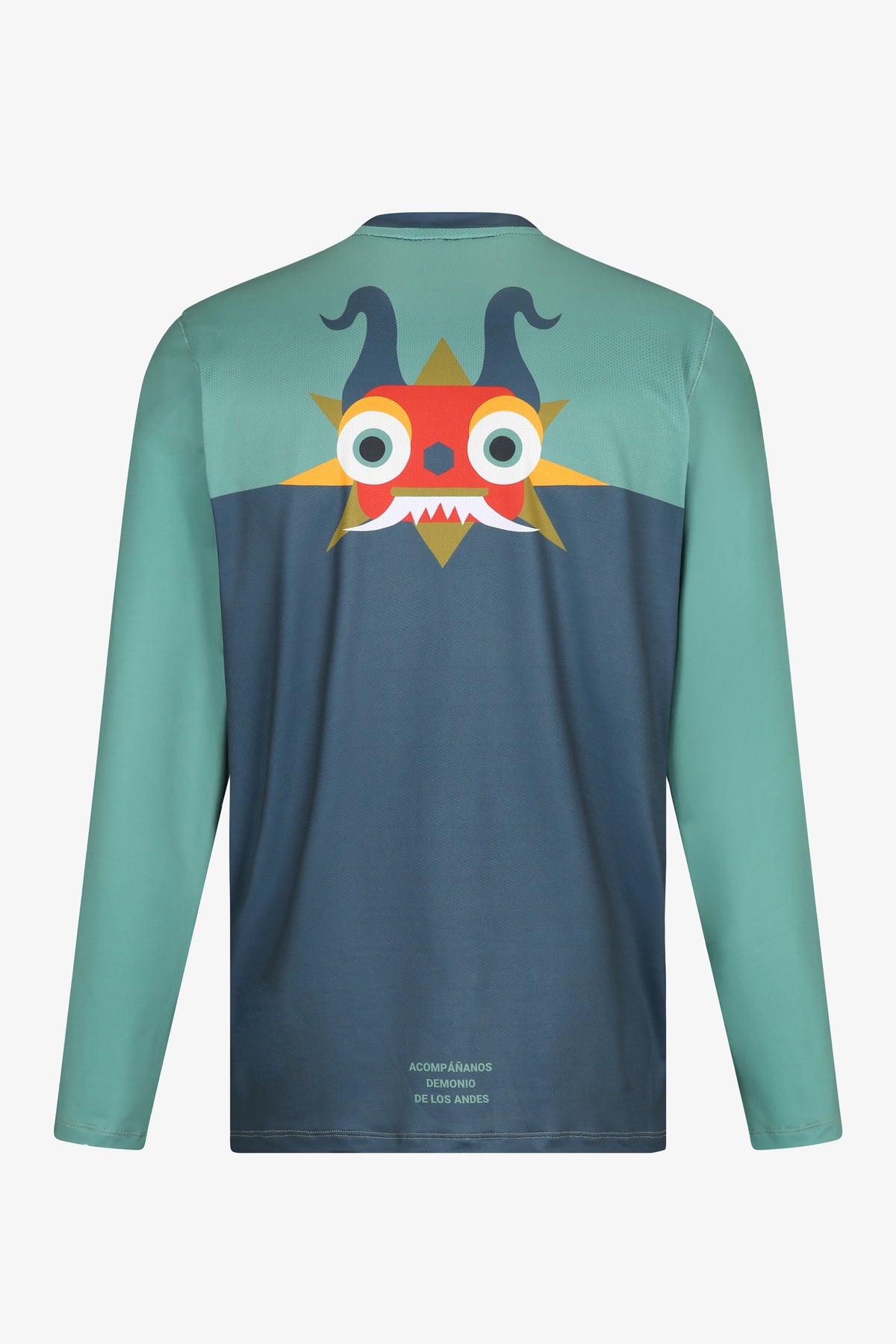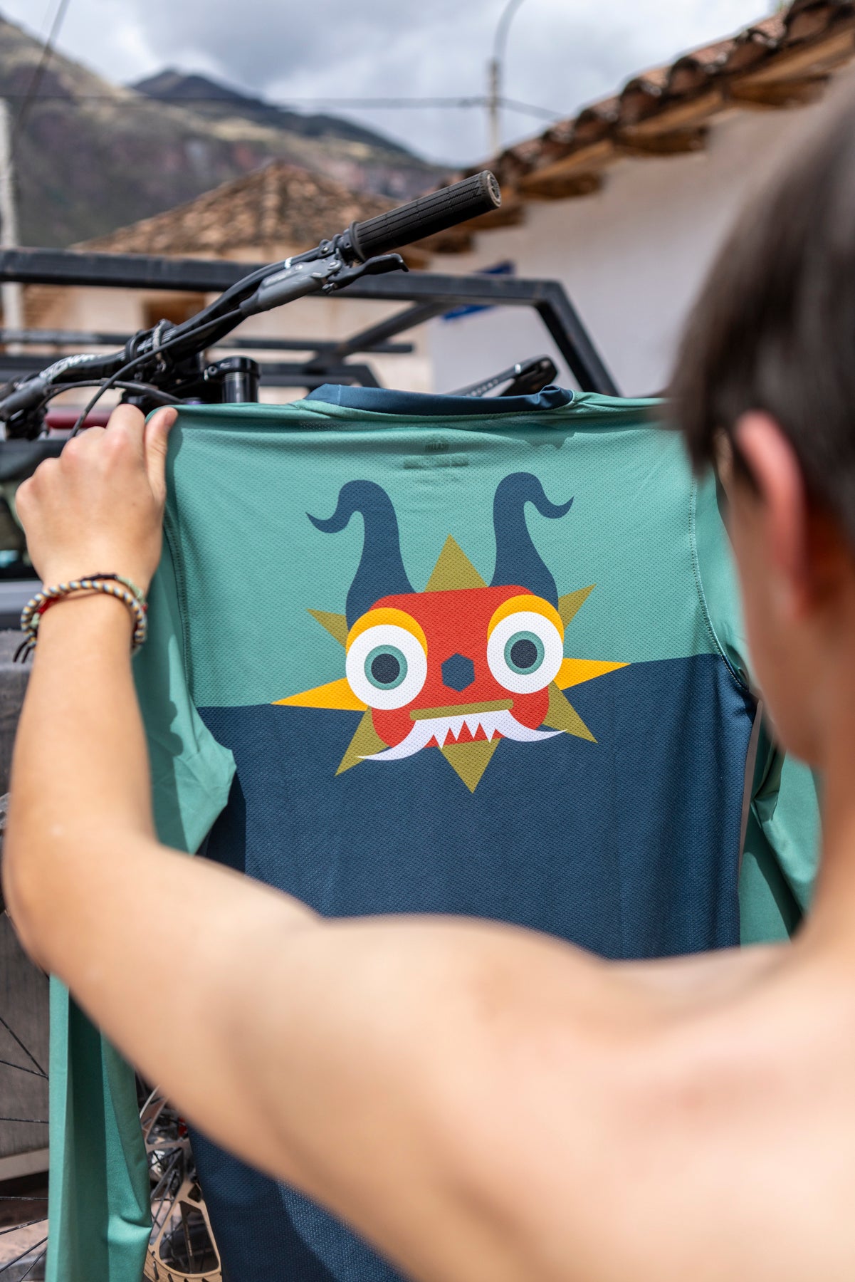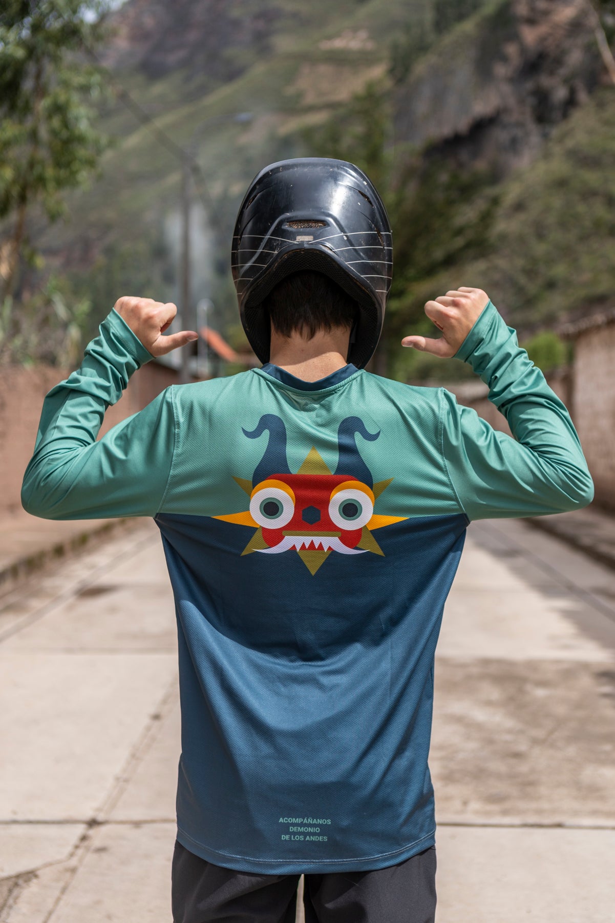 Jersey deportivo técnico para MTB y actividades outdoors. Inspirado en los demonios de espíritu rebelde que surcan en el "Antisuyo", la región selvática del Tahuantinsuyo. Fabricado en Perú.